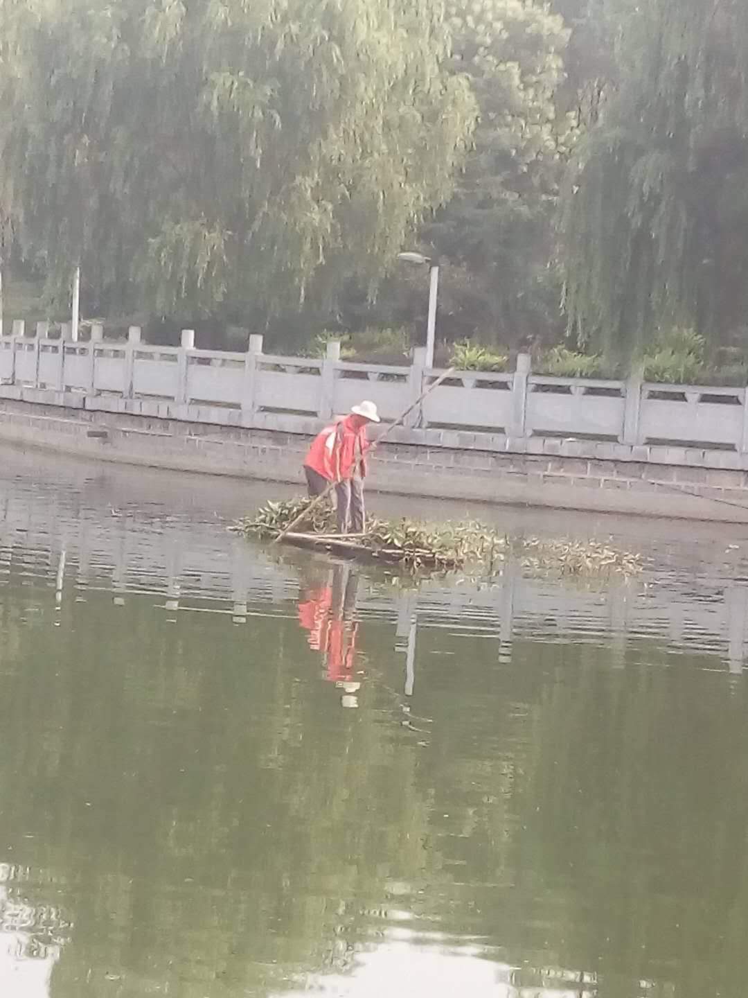 清理湖水里的雜物,還水一片綠
