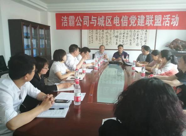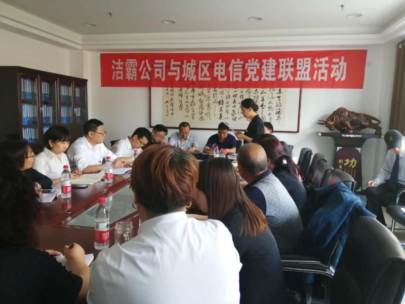 5月27日下午,潔霸公司黨支部與城區(qū)電信東城西城聯(lián)合黨支部開展了黨建聯(lián)盟活動。首先雙方對公司的概況以及黨支部成員的構(gòu)成做了詳細的介紹?偨(jīng)理程晉軍及支部書記李山虎對城區(qū)電信公司黨支部成員的到來表示了熱烈的歡迎。