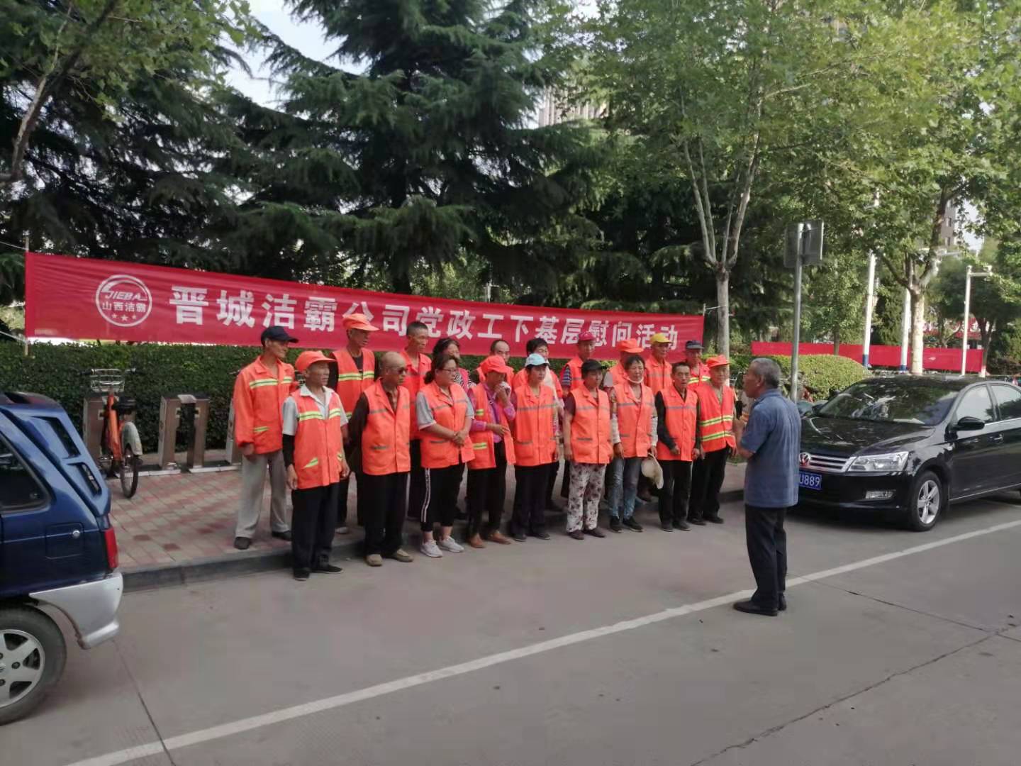 “大家辛苦了!”工會(huì)崔主席面對站在對面的滿臉汗水的環(huán)衛(wèi)員工深深一鞠躬,向高溫下奮戰(zhàn)在一線的環(huán)衛(wèi)員工們表示感謝。崔主席說,大家從事的環(huán)衛(wèi)工作雖苦、臟、累,但是大家心靈美,創(chuàng)建全國文明城市有咱的功勞,這是咱們潔霸的榮耀!他叮囑隨行的保潔部主管,在炎熱的夏季要時(shí)刻關(guān)心一線的員工,多傾聽員工的心聲,積極為他們做好后勤保障工作。他囑咐環(huán)衛(wèi)員工們,在高溫下作業(yè)要做好防暑降溫工作,確保自身健康安全。工作中要積極配合主管,共同把工作干好。