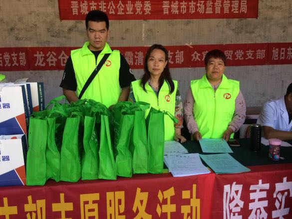 此次活動由晉城市市場監(jiān)督管理局和市非公企業(yè)黨委領(lǐng)導帶隊,非公黨委下屬的潔霸清潔、神利電器、隆泰實業(yè)、龍谷倉等九個支部的黨員志愿者30余人參加,活動旨在關(guān)愛弱勢群體,提供志愿服務(wù),弘揚黨員志愿者精神,切實發(fā)揮文明單位的引領(lǐng)示范作用,送文化和健康下鄉(xiāng),助力晉城市扶貧攻堅行動。
