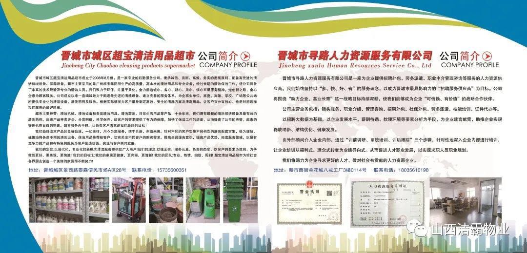 20年砥礪奮進(jìn),從一個租賃兩間辦公室名不見經(jīng)傳的小公司,成長為擁有擁有辦公場所1500余平米,總資產(chǎn)逾千萬元,員工1500余人的晉城市家政行業(yè)的標(biāo)桿企業(yè),潔霸完成了精彩跨越,“做清潔行業(yè)的霸主”的發(fā)展定位從未改變。