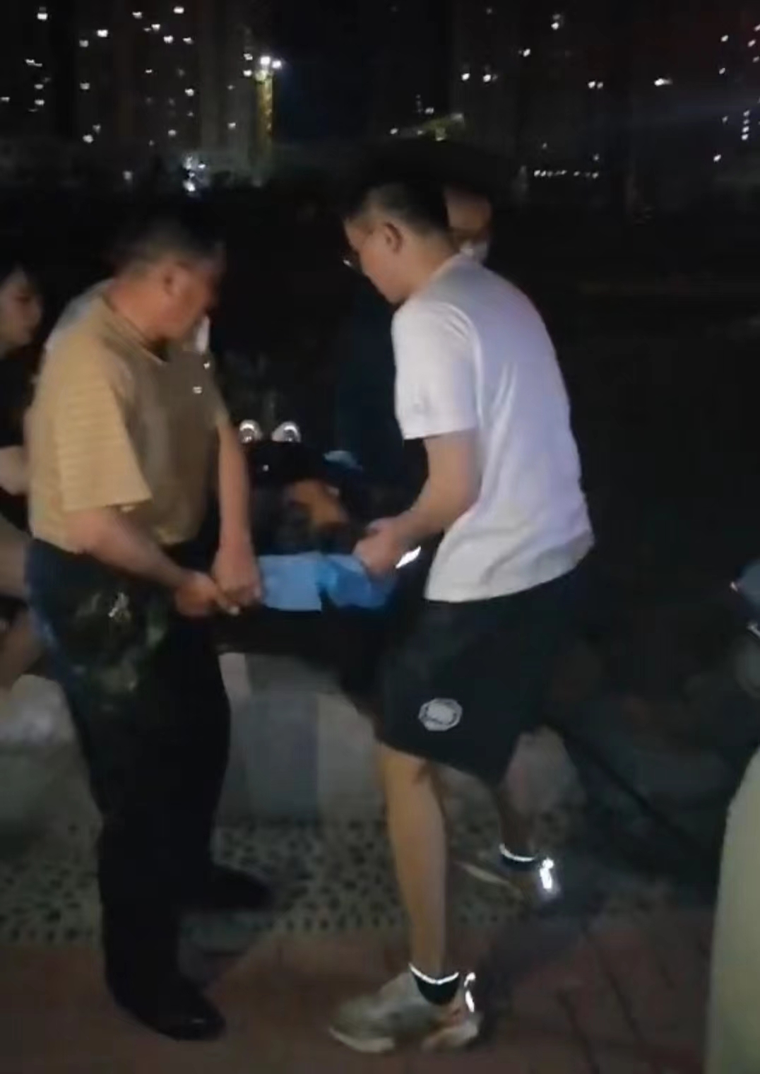當(dāng)晚10時(shí)左右,保安隊(duì)長毋海文剛從公園疫情卡口值班結(jié)束,回到管理房,一名年輕女子氣喘吁吁跑到管理房說湖中有人落水,聽到此消息,毋隊(duì)長快速向事發(fā)地點(diǎn)跑去。到達(dá)事發(fā)地點(diǎn)后,湖水已浸到落水者頸部,只能看到落水者的臉部。市民已將湖邊設(shè)置的救生圈扔到湖里,毋隊(duì)長和身邊一位90后年輕男子迅速跳入湖里,游到落水女子身邊展開施救。晚上湖水較涼,加之落水者渾身已經(jīng)濕透,他們用力兩次才將落水女子平安救上岸。上岸后,落水女子呼吸微弱,觸摸其頸部有輕微脈搏,毋隊(duì)長根據(jù)日常急救知識(shí)將落水女子采取側(cè)躺位,并拍打起背部,直至落水女子長長呼出一口氣,他的心才放下來。熱心市民撥打了110和120,醫(yī)護(hù)人員趕到現(xiàn)場(chǎng)對(duì)落水女子進(jìn)行體征檢查后,毋隊(duì)長和醫(yī)護(hù)人員、熱心市民將落水女子抬上救護(hù)車?yán)玲t(yī)院救治。
