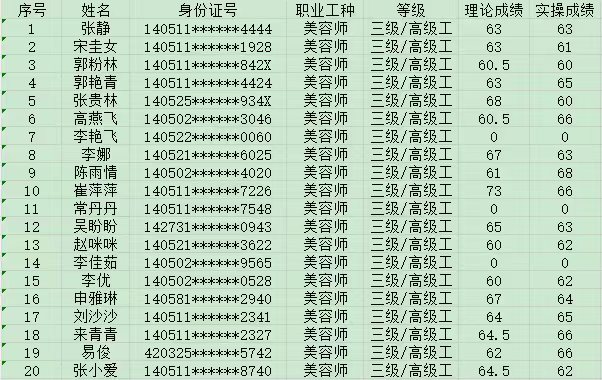 2024年10月13日第12批美容師高級認定人員成績公示