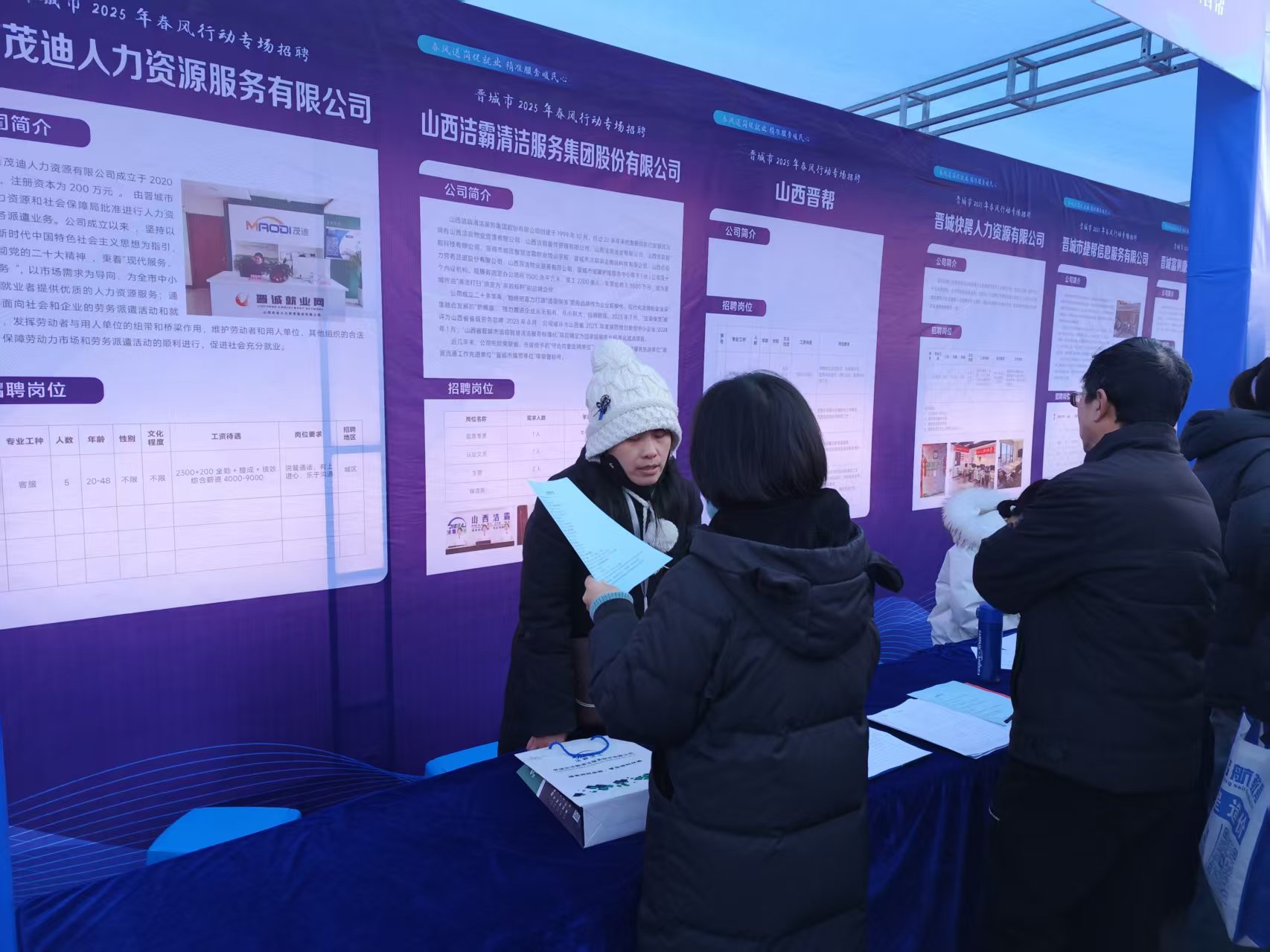 2月9日,“春風(fēng)送崗促就業(yè) 精準(zhǔn)服務(wù)暖民心”晉城市2025年春風(fēng)行動(dòng)專(zhuān)場(chǎng)招聘活動(dòng)在陽(yáng)電體育場(chǎng)舉行。我公司人力資源部參加活動(dòng)。